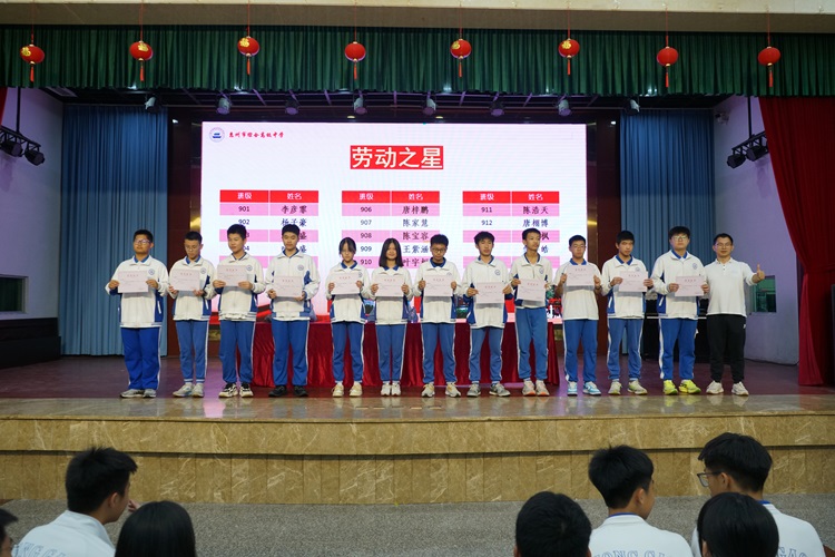 会上,初三年级主任陈武校公布了获奖学生名单,包括自律之星、劳动之星、体育之星、文明之星、进步之星和优秀早读班级、优胜班级、进步班级等多个奖项。在热烈的氛围中,与会领导为获奖的师生代表进行了颁奖。