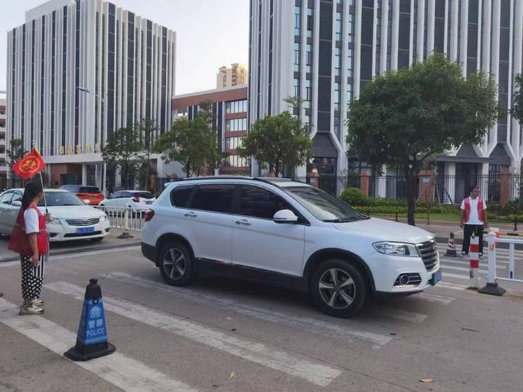 学校组织校领导、行政干部、老师、安保人员等力量,佩戴护学标识,在学生上下学时段开展驻守、巡逻、疏导等工作,引导接送学生车辆即停即走、车辆规范有序停放,为学生平安上、下学构筑安全防线,增强广大师生、家长的安全感。