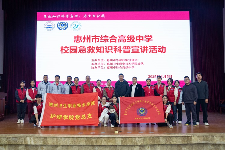 3月5日下午,惠州市急救技能宣讲团走进我校,开展大型校园急救知识科普宣讲活动,为教职工带来了一场关乎生命安全的知识盛宴。活动旨在提升师生急救意识,增强应对突发状况的应急处置能力。