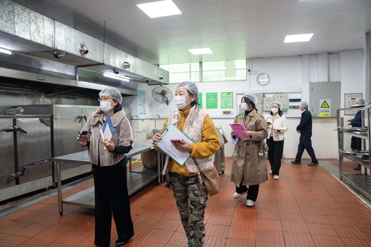 3月17日,校领导和膳食监督家长委员会成员一同到学校食堂进行实地监督检查。他们深入厨房操作间、食材储存区、餐具消洗区等关键区域,仔细查看了食堂的环境卫生、食材采购渠道、食品加工流程以及餐具消毒情况。家长们对食堂的环境卫生情况、食材选择搭配、膳食品质和服务等给予肯定,同时对食堂工作提出了宝贵的建议。
