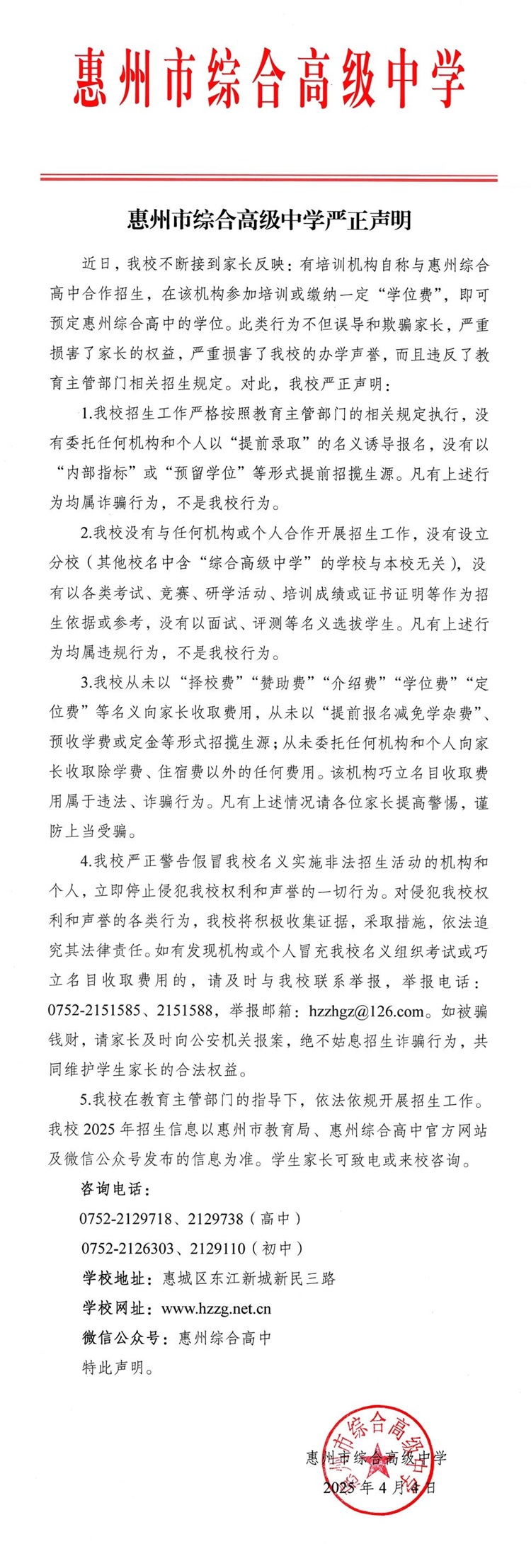 惠州综合高中“五一”校友返校师生联谊活动公告