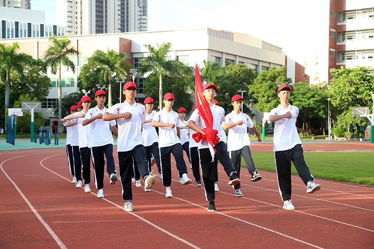 高中部校长廖其法作军训总结讲话。他特别肯定了同学们在军训期间展现出的坚韧品格与良好风貌,并勉励大家将军训中激发的爱国热情升华,将军训中养成的顽强意志坚持下去,将军训中强化的纪律观念保持下去,带着收获与力量,在未来的时光里书写无愧于自我、无愧于时代的青春篇章。