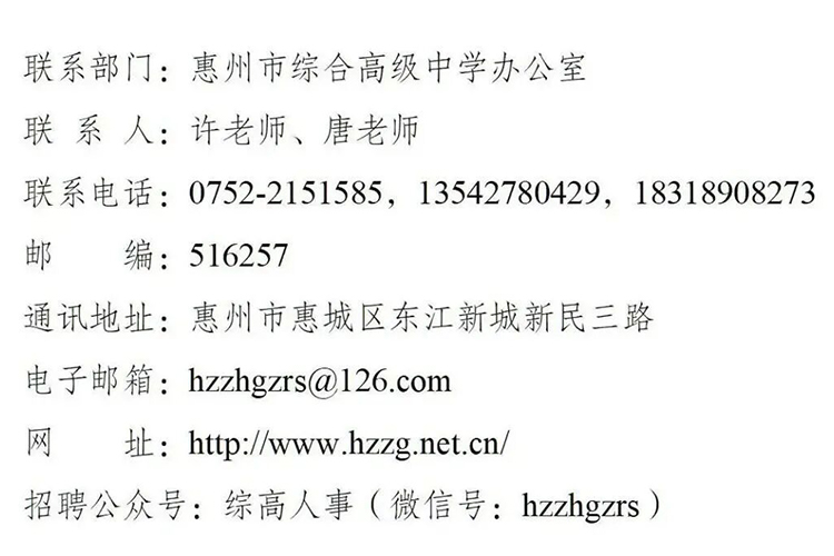 广东惠州综合高中(普通高中)2025年赴华中师范大学、湖南科技大学招聘教师公告