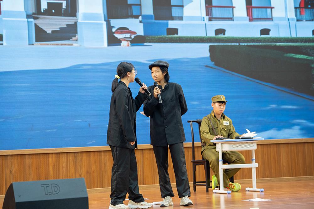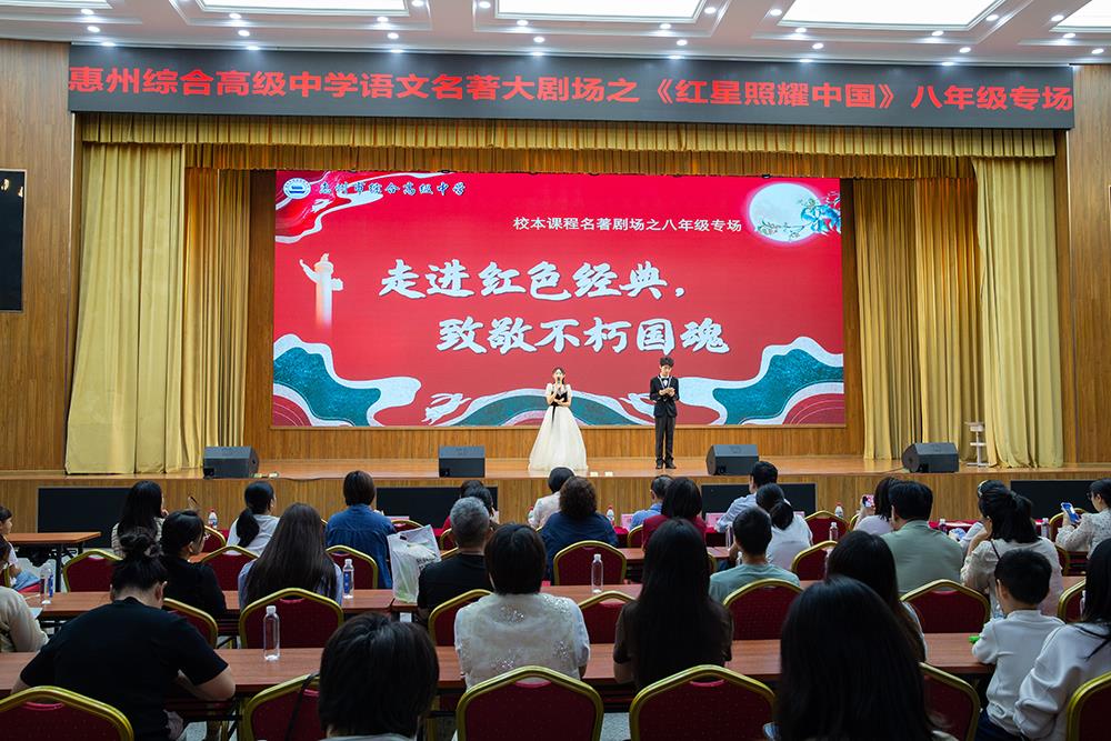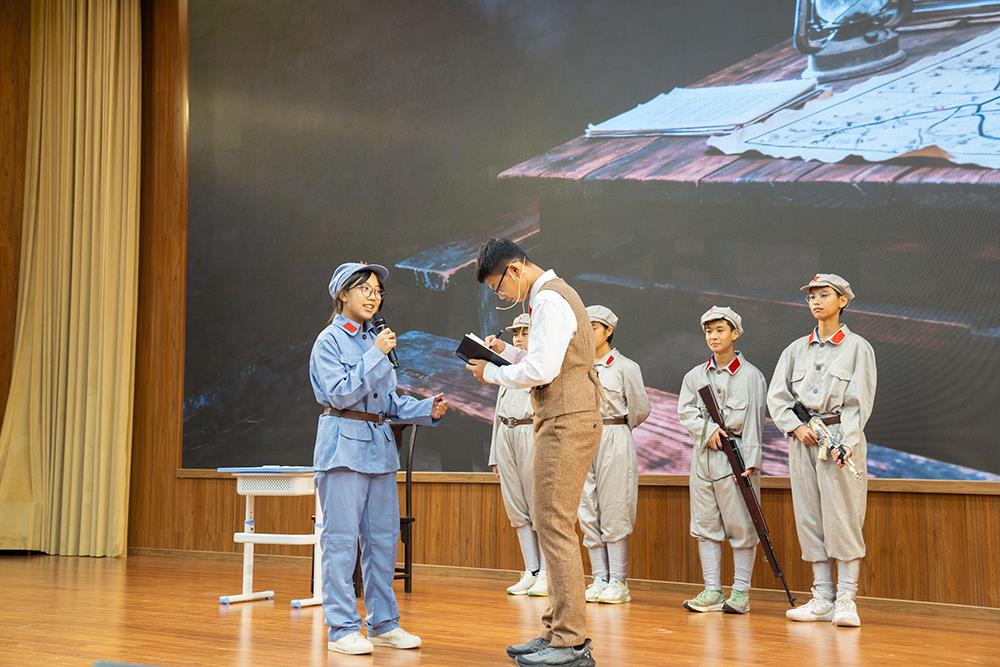 为传承红色基因,厚植家国情怀,提升学生综合素养,10月31日下午,我校在求真讲堂举行了校本课程名著剧场《红星照耀中国》初二年级专场活动。整场演出由学生自编、自导、自演,以丰富的形式和饱满的情感,带领观众重温峥嵘岁月,致敬英雄精神,展现了我校学子昂扬的精神风貌与深厚的文化素养。侯宏泉总校长、谢方惠书记等校领导到场观看。