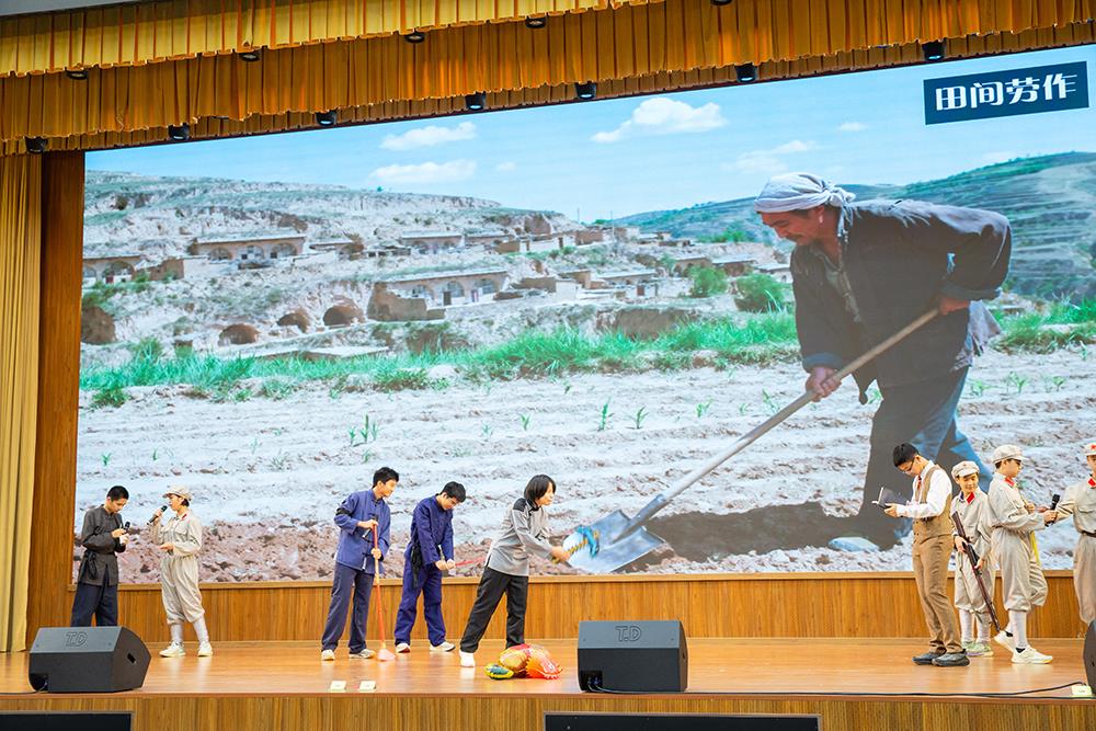 演出在《映山红》的悠扬歌声中拉开帷幕。随后,首场剧目《红星闪耀中国行》生动再现了美国记者埃德加·斯诺深入陕北根据地探寻中国革命真相的历程。同学们通过细腻的表演,将斯诺的惊讶、感动与敬佩,以及红军战士的乐观与坚定,刻画得淋漓尽致,让观众感受到信仰的力量。