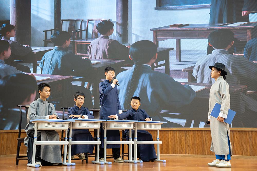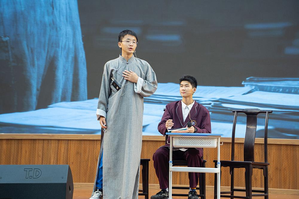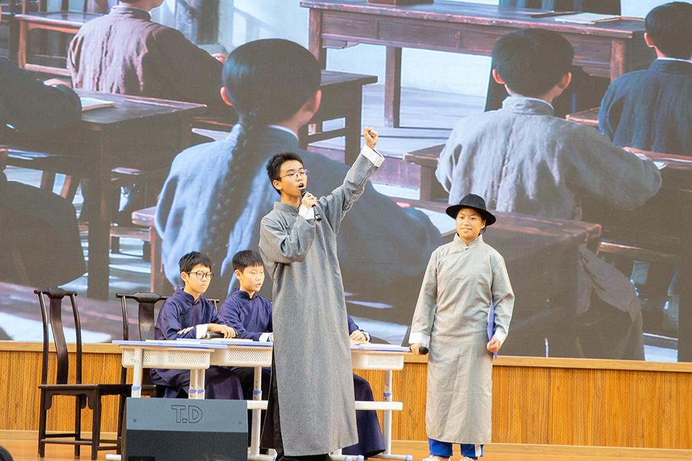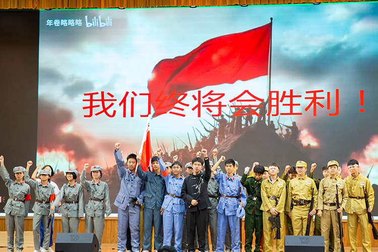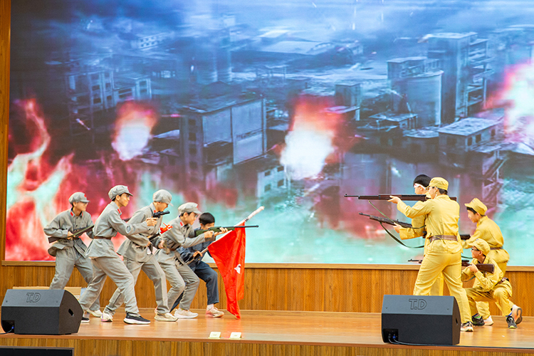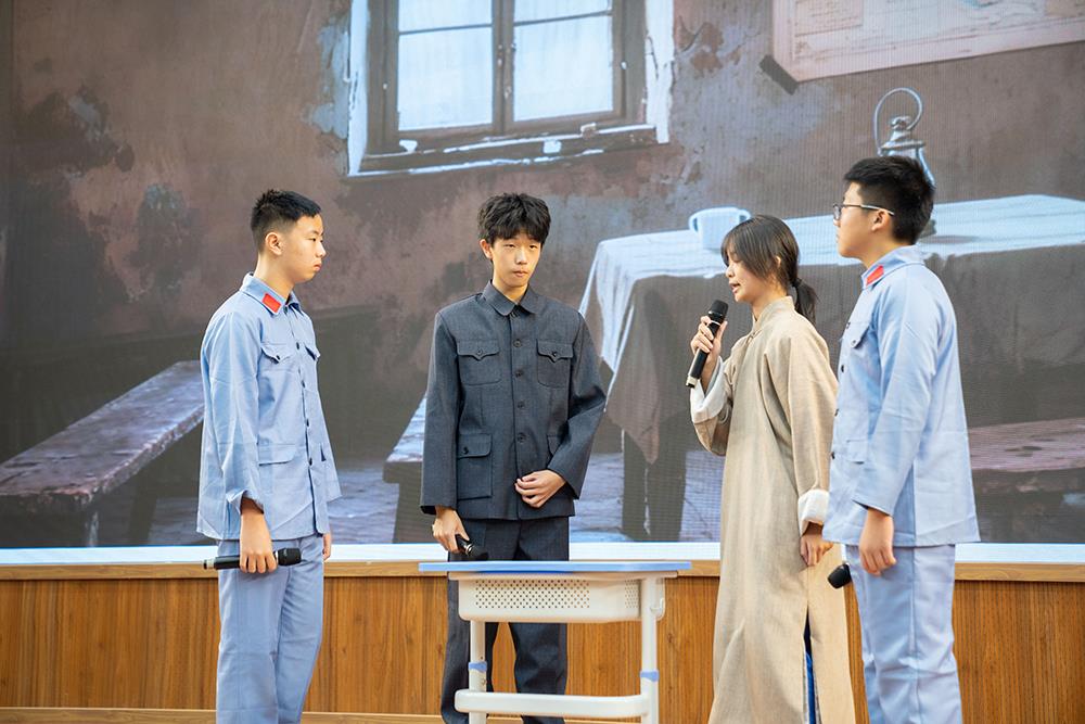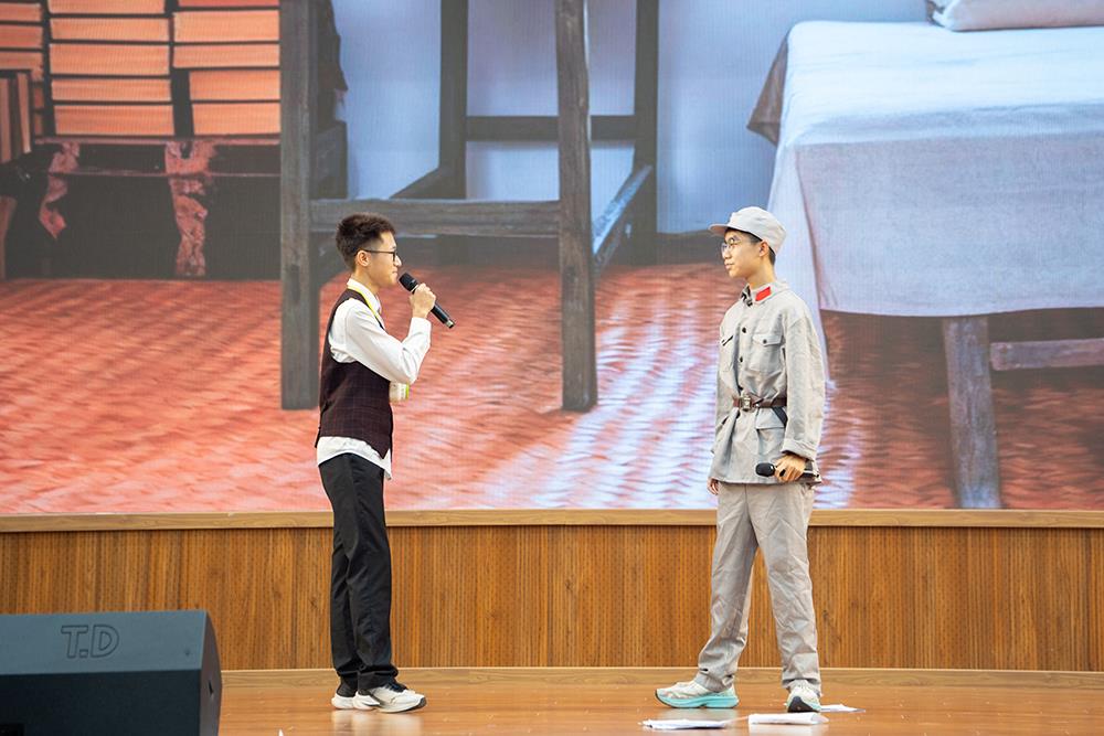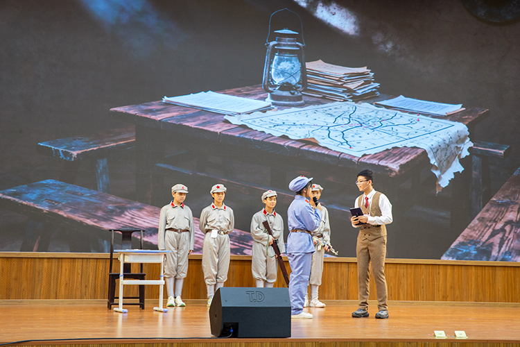 在《红色君子周恩来》一剧中,同学们聚焦周恩来的崇高品格与人格风范,通过若干革命场景的刻画,塑造出一位儒雅智慧、心系家国的“红色君子”形象,其少年时立下的“为中华之崛起而读书”的壮志令在场师生无不动容。