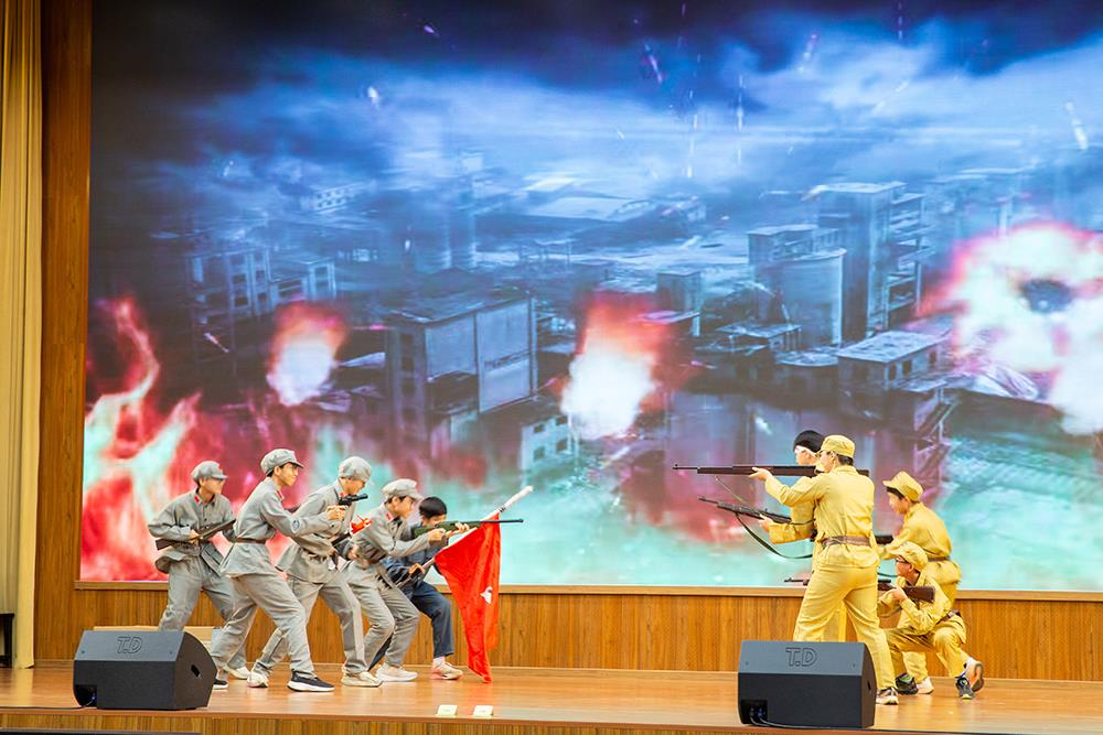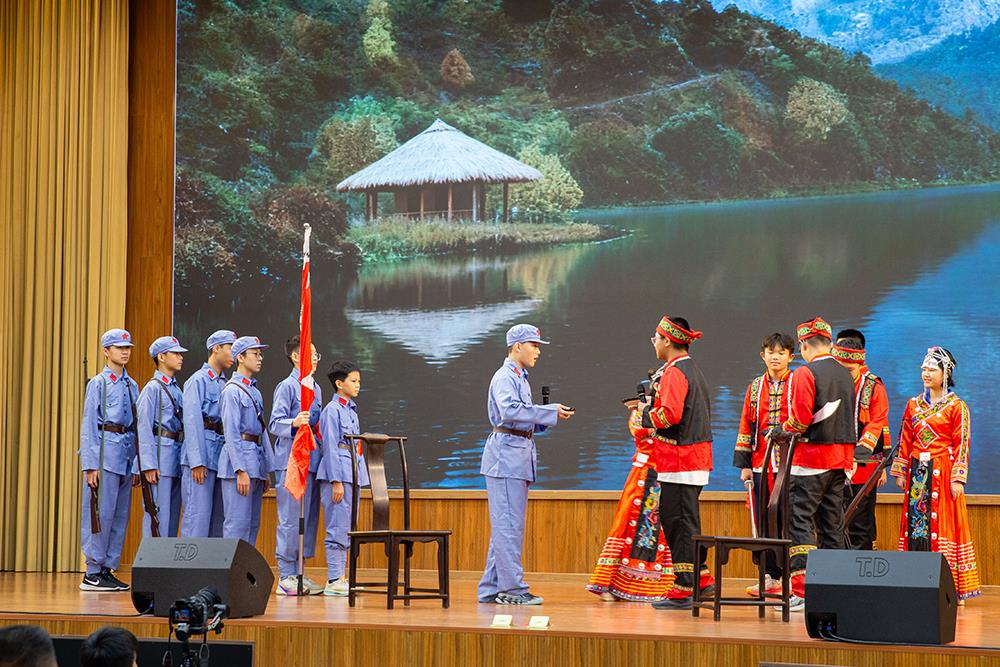 演出最后在《风雨长征路》的壮烈叙事中落下帷幕。同学们通过生动的舞台语言,再现了红军将士彝海结盟、飞夺泸定桥的艰难历程,讴歌了伟大的长征精神。