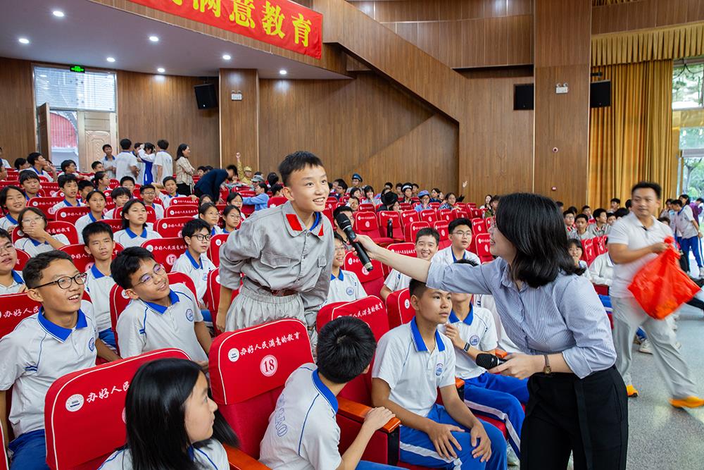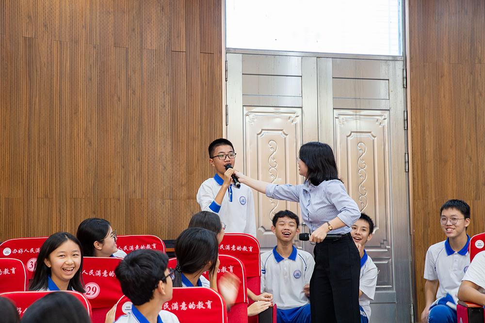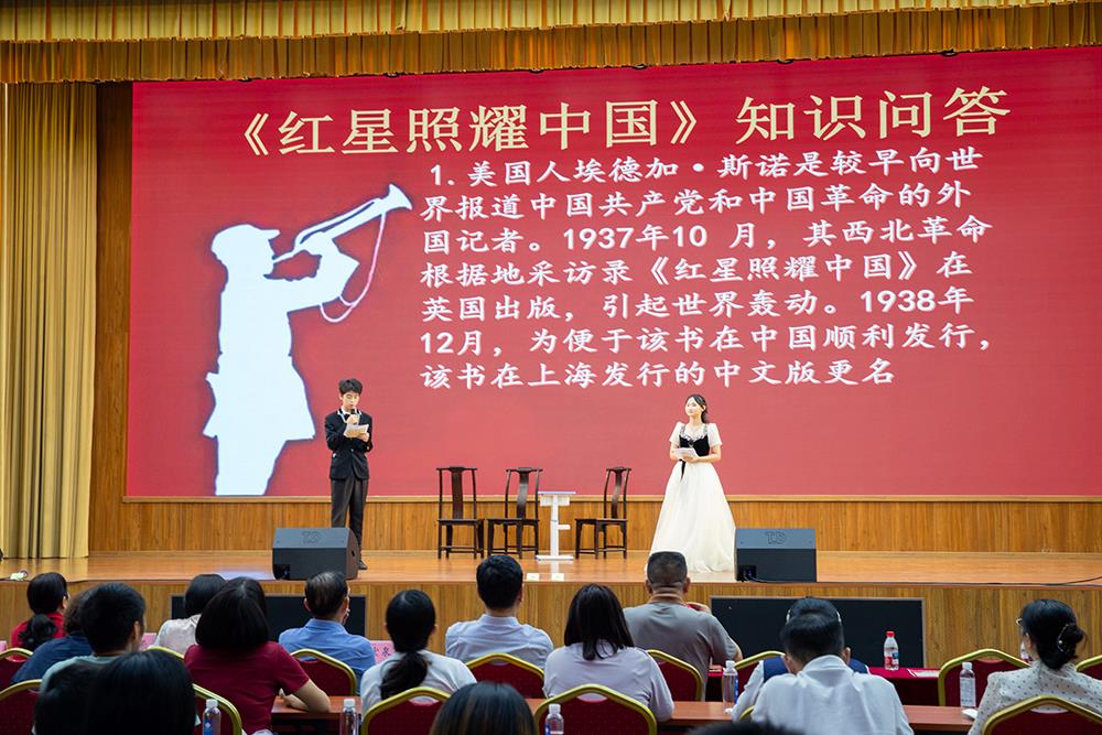 在紧张的名著知识问答环节,台下同学踊跃参与,积极抢答,展现出对《红星照耀中国》及相关历史知识的熟悉与理解,现场气氛热烈。